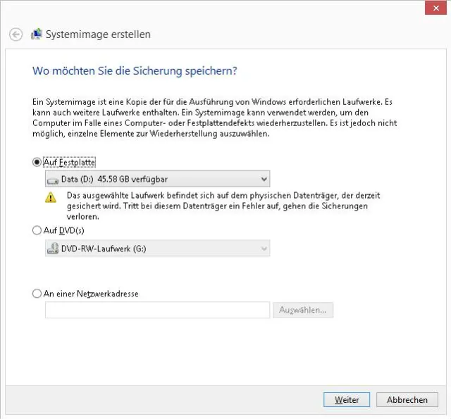 Sicherungslaufwerk auswählen