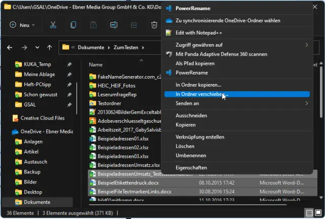 Das Kontextmenü, das beim Rechtsklick auf eine Datei erscheint, bietet so einiges. Nur fehlen darin zwei Befehle, die Ihnen vielleicht nützen könnten: In Ordner verschieben und In Ordner kopieren.