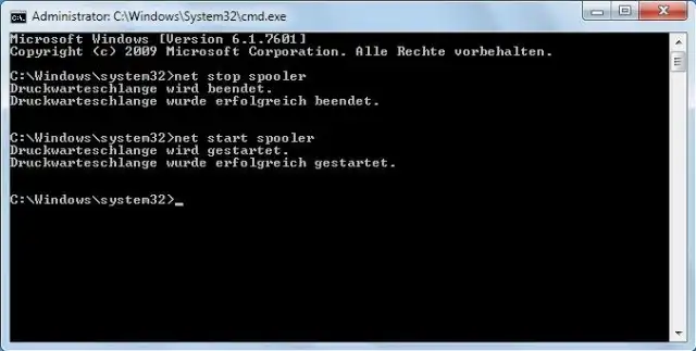 - In Konsole eingeben: net start spooler