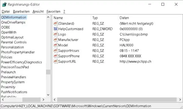 HKEY_LOCAL_MACHINE\SOFTWARE\Microsoft\Windows \CurrentVersion\OEMInformation
