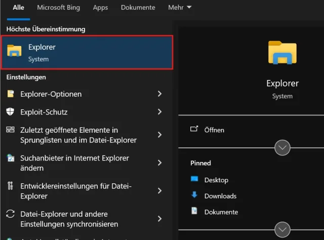 Microsoft hat mehrere Möglichkeiten integriert, um den Windows-Explorer zu starten. So finden Sie ihn als Explorer im Startmenü von Windows, Bild 1.