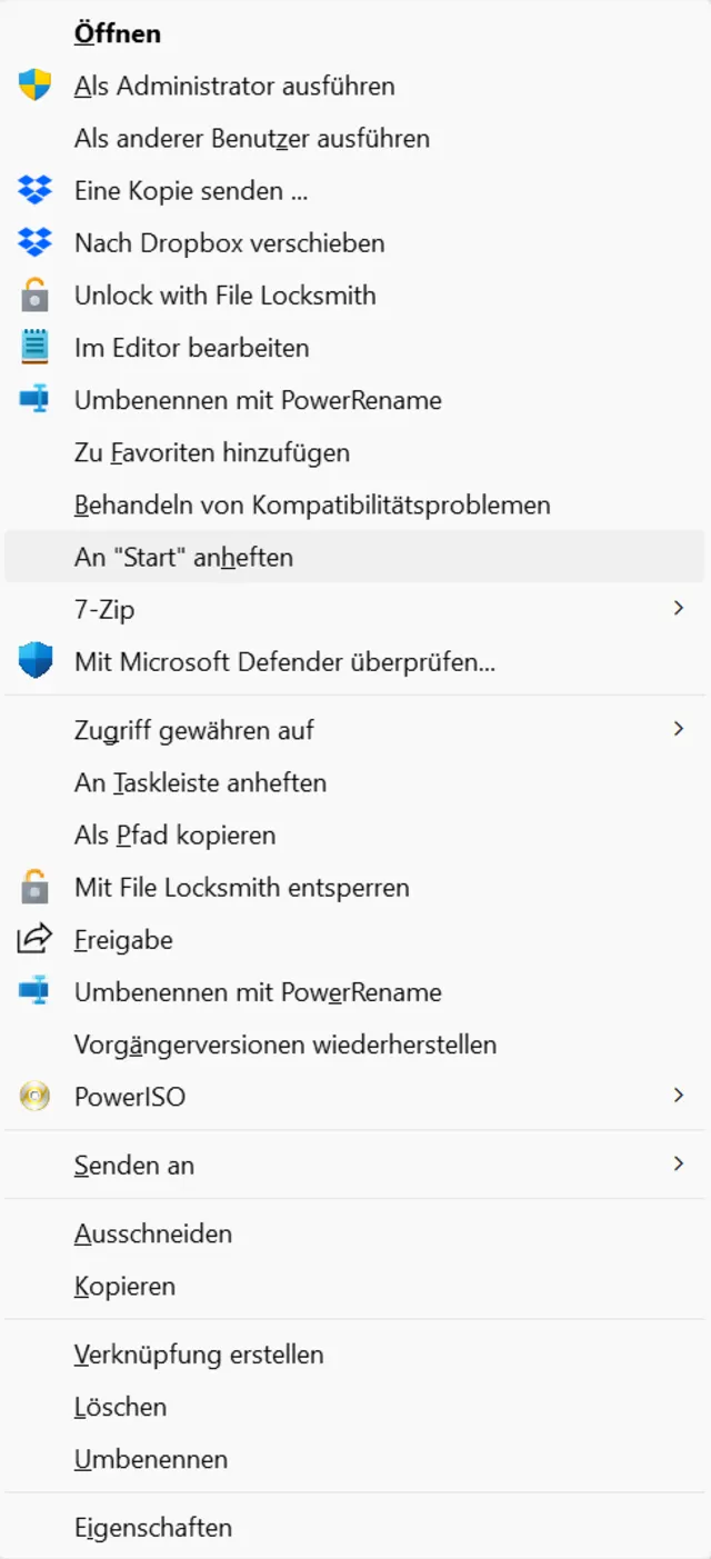 Bild 4: Drücken Sie beim Rechtsklick auf eine Datei Shift, um das komplette Menü zu öffnen