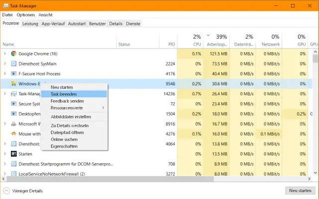 Schliessen Sie zuerst alle Programme und Ordnerfenster. Öffnen Sie den Task-Manager, zum Beispiel mittels Ctrl+Shift+Esc (Strg+Umschalt+Esc) oder nach einem Rechtsklick auf eine freie Stelle auf Ihrer Taskleiste (Win10) bzw. unter Windows 11 nach einem Rechtsklick auf den Start-Button, gefolgt von Task-Manager.