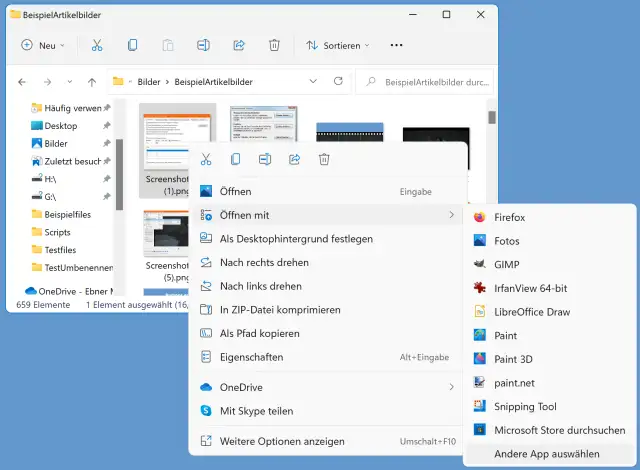 Wählen Sie nach einem Rechtsklick Öffnen mit/Andere App auswählen.
