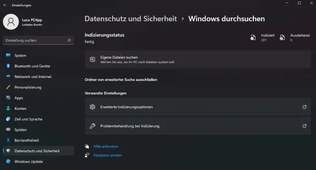 Bild 2: Im Menü «Windows durchsuchen» passen Sie die Indizierung an