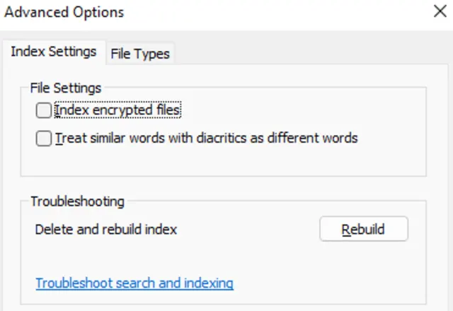 Quelle: PCtipp.chSollten Sie Probleme mit dem Index haben, gibt es eine Möglichkeit, diesen neu aufzubauen. Das kann sich so oder so nach einigen Jahren mal lohnen. Auch nach grösseren Änderungen an der Index-Auswahl ist es sinnvoll, den Index neu zu erstellen. Windows erledigt das zwar schon automatisch, es kann aber sein, dass sich Microsoft dafür ein paar Stunden oder sogar Tage Zeit lässt. Klicken Sie im Menü Windows durchsuchen auf Erweiterte Indizierungsoptionen. Wählen Sie Erweitert. Das folgende Menü ist leider Stand Juli 2022 noch auf Englisch. Sie können jedoch einfach mit einem Klick auf Rebuild den alten Index löschen und einen neuen erstellen, Bild 4.