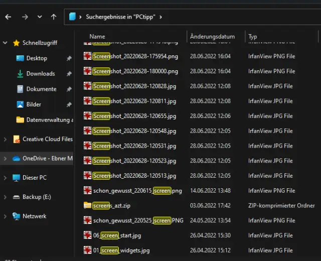 Das findet sämtliche Bilder mit dem Wort «screen» im Dateinamen.