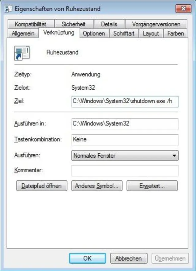 Windows: Verknüpfung mit Befehl für direkten Standby-Modus
