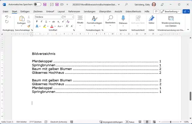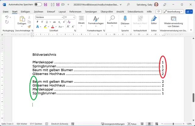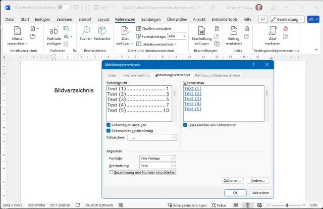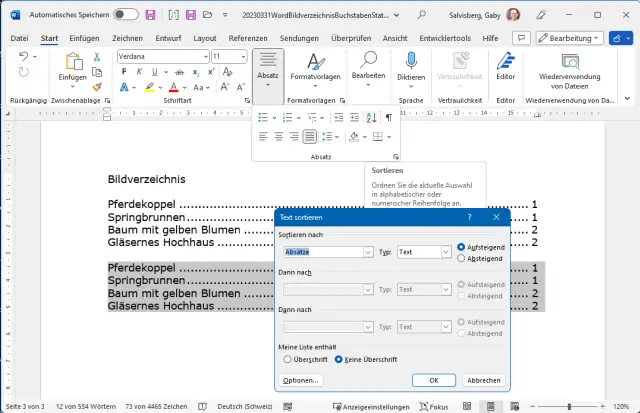 Word: Abbildungsverzeichnis nach Bildbezeichnung alphabetisch sortieren