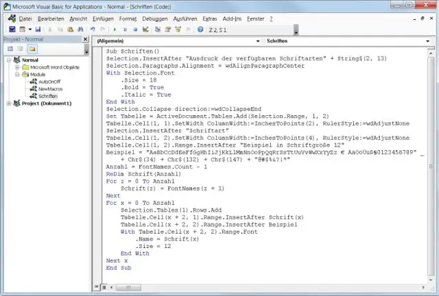Word: Auflisten der Schriftarten