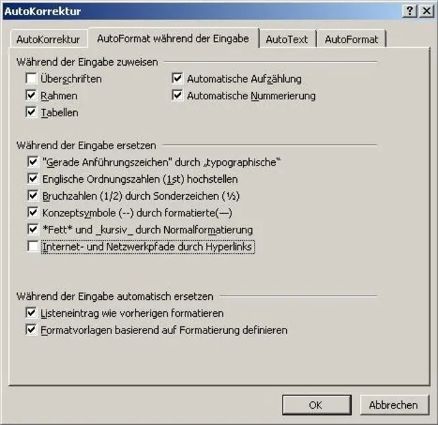 Um sie abzuschalten, wählen Sie in Word "Extras/AutoKorrektur" und dann die Registerkarte "AutoFormat während der Eingabe". Dort deaktivieren Sie im Bereich "Während der Eingabe ersetzen" die Option "Internet- und Netzwerkpfade durch Hyperlinks".