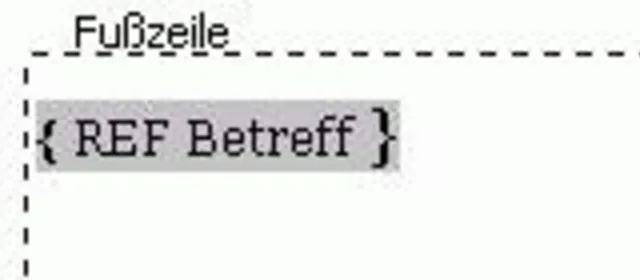 Nun wird das Feld in Ihrer Fusszeile eingefügt, und jede Änderung, die Sie in der Textmarke "Betreff" vornehmen, wird sofort in die Fusszeile übernommen.