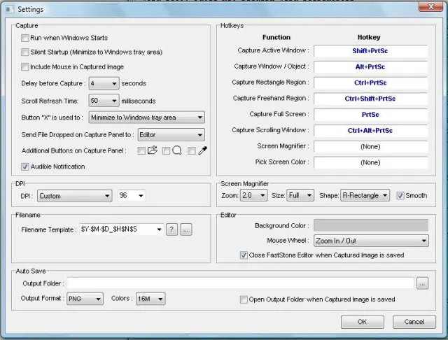 FastStone Capture: Das Fenster mit den Einstellungen (Settings)