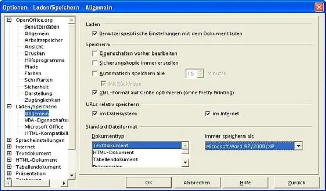 Auf der rechten Seite können Sie einstellen, dass der Standard-Dateityp für das Speichern von Textdokumenten immer "Microsoft Word 97/2000/XP" sein soll. Dann brauchen Sie diesen Typ beim Speichern nicht mehr auszuwählen.