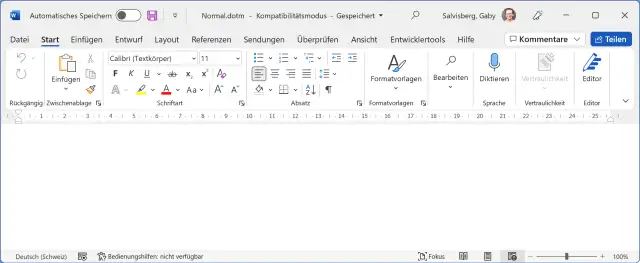 Das Öffnen hat geklappt. Das ist unsere Dokumentvorlage Normal.dotm, die den Kompatibilitätsmodus hervorruft
