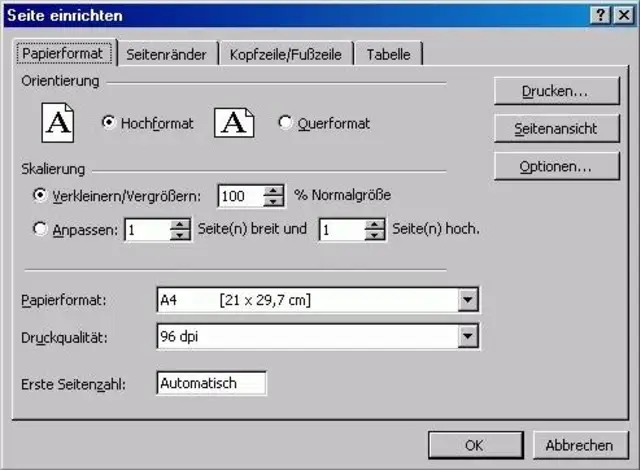 Word/Excel: Benutzerdefiniertes Papierformat
