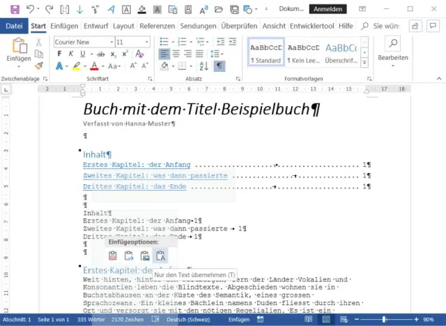 Quelle: PCtipp.chJetzt fügt Word nur die reinen Daten des Verzeichnisses ein, ohne jegliches Smart-Objekt und ohne Formatierungen. Die Tabulator-Sprünge kommen jedoch mit. Markieren Sie das als Text eingefügte Inhaltsverzeichnis und setzen Sie z.B. für die Seitenzahl einen (evtl. rechtsbündigen) Tabulator an die gewünschte Stelle. So rutschen die Seitenzahlen wieder nach rechts und stehen schön untereinander. Das ursprüngliche Inhaltsverzeichnis können Sie nun löschen.