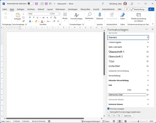 Wo sind in Word die Formatvorlagen?