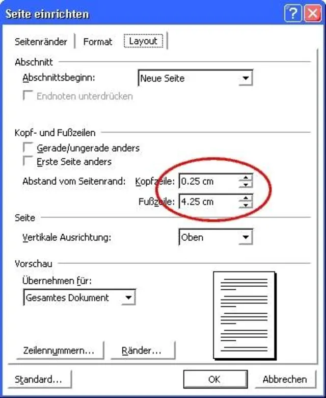 Word: Fusszeile abgeschnitten