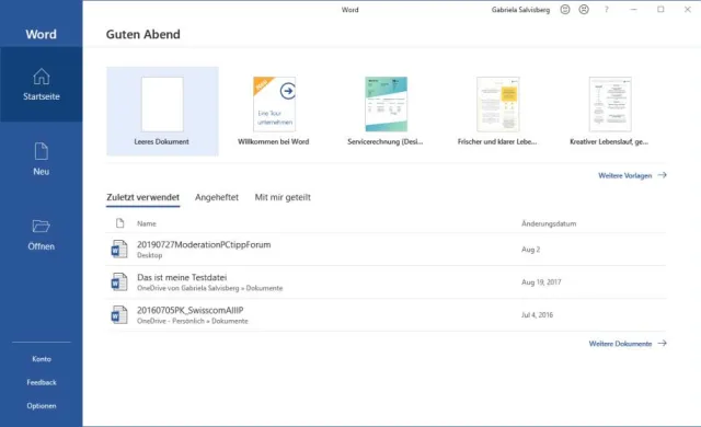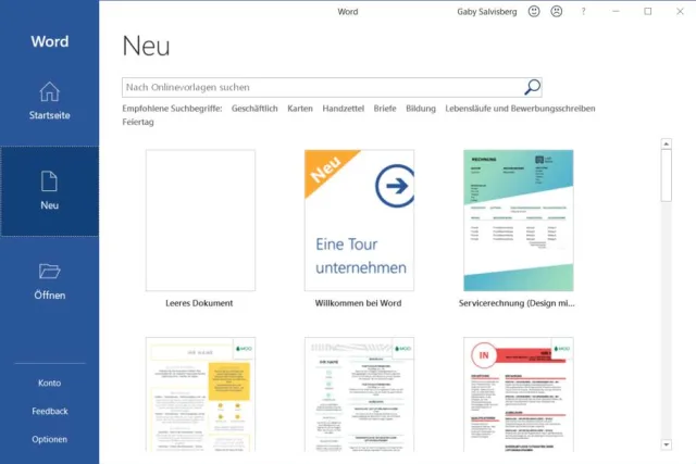 Auf der Word-Startseite sehen Sie nur Vorlagen von Microsoft und früher benutzte Dokumente – aber nicht Ihre Vorlagen