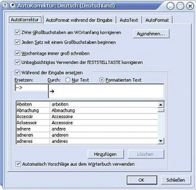 AutoKorrektur-Eintrag hinzufügen