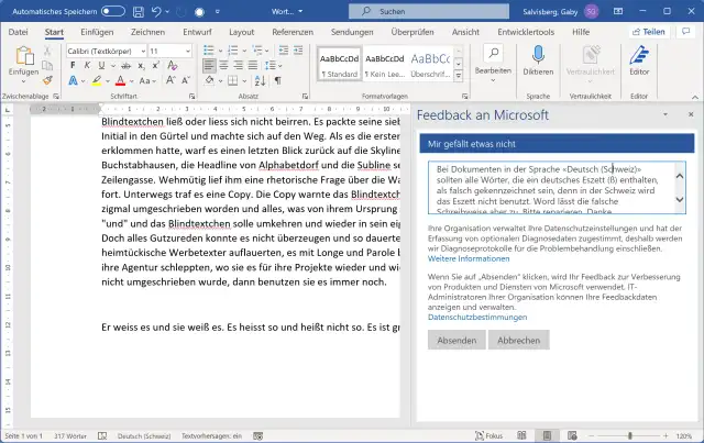 Wenn Word Schweizer Dokumente richtig korrigieren soll, melden Sie diesen Bug