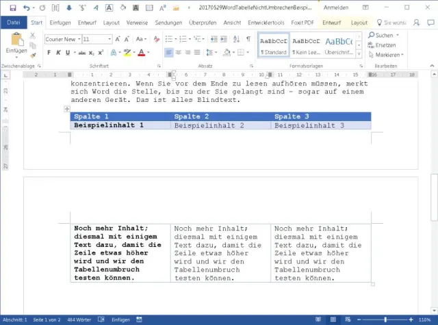 Word: Tabelle bei Seitenumbruch (nicht) teilen