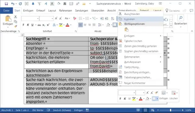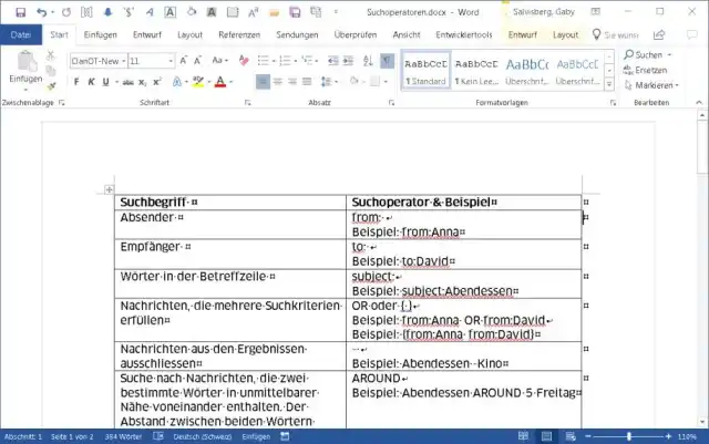 Schritt für Schritt: Falls Sie die Word-Version der Tabelle noch behalten wollen, arbeiten Sie für das Folgende mit einer Kopie der Datei. Speichern Sie diese deshalb via Datei/Speichern unter mit einem neuen Dateinamen ab. Wir nehmen beispielsweise «SuchoperatorenXLExport.docx», weil die Ursprungsdatei Suchoperatoren.docx heisst.