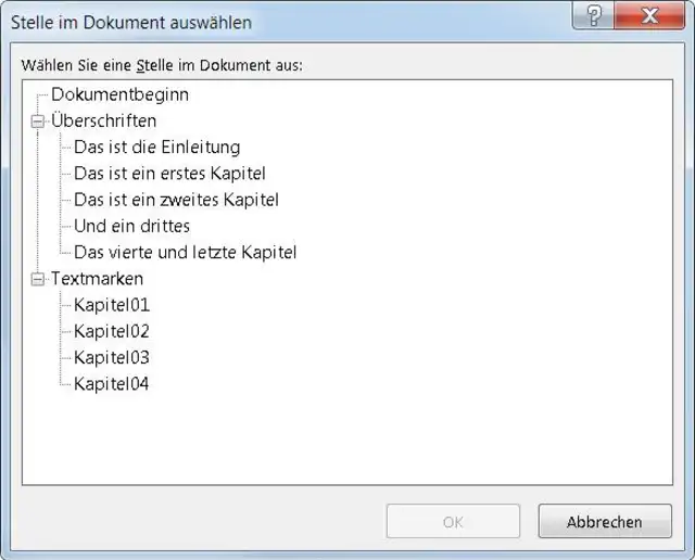 In längeren Dokumenten sind Querverweise und Links innerhalb des Dokuments oft nützlich, damit der Leser schnell zur gewünschten Stelle springen kann. Aber wie bringen Sie die an?