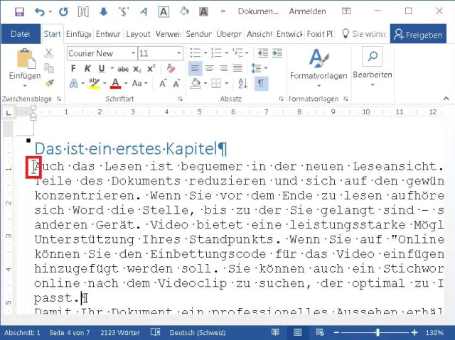 Word zeigt Textmarken mit einem unscheinbaren Zeichen an