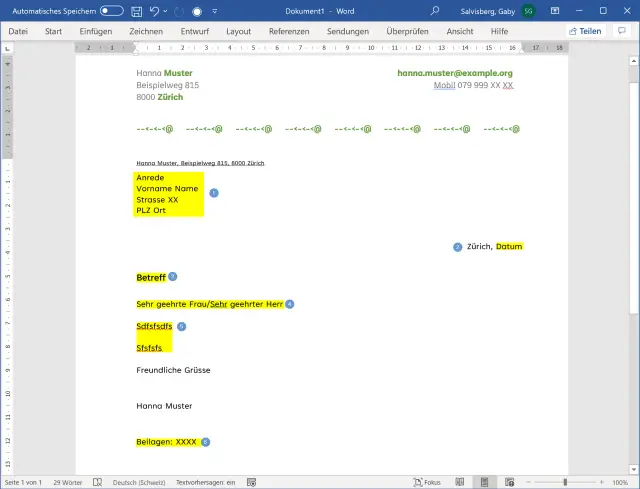 Word-Vorlage mit direkt anspringbaren Textstellen