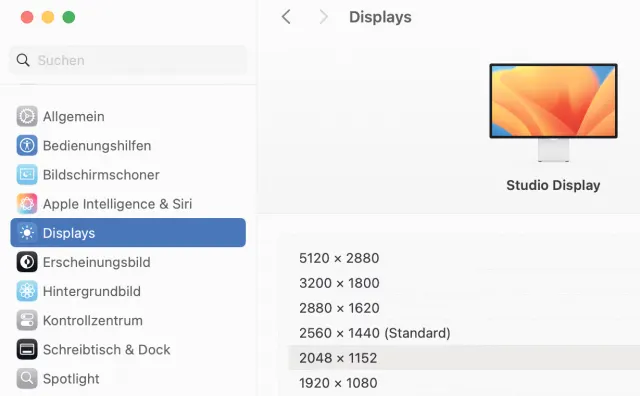 Bild 1: Die von macOS vordefinierten Skalierungen passen meistens perfekt, erst recht auf den Apple-eigenen Displays