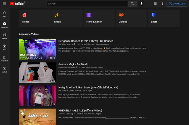 Quelle: PCtipp.chOhne Nutzerkonto und ohne jeglichen gespeicherten Verlauf sehen Sie einfach, was in Ihrer Region gerade im Trend liegt. In der Schweiz führt das jeweils zu einem lustigen Mix aus Inhalten in Deutsch, Französisch, Englisch und Albanisch.