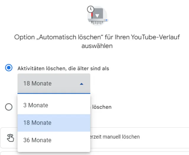 Bild 4: Bestimmen Sie, wann YouTube Ihren Verlauf automatisch löschen soll