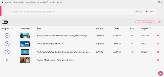Bild 14: Stacher lädt YouTube-Videos auf Ihren PC herunter
