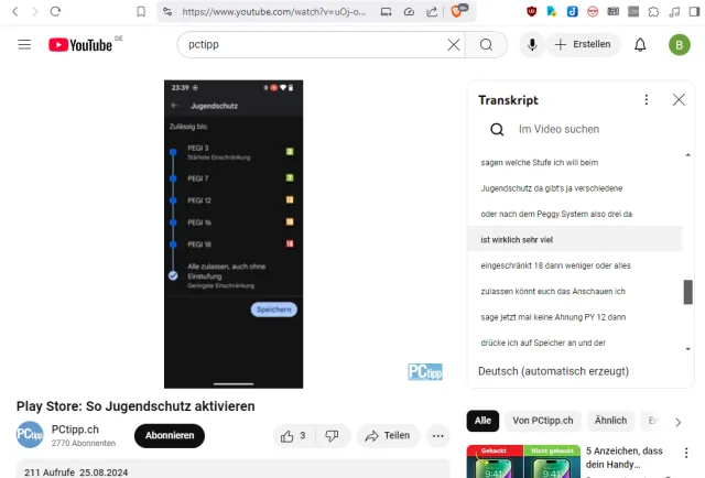 Bild 15: YouTube erzeugt meist automatisch eine Mitschrift