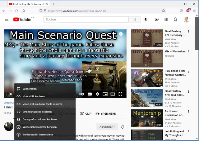 Führen Sie einen Rechtsklick auf das Video aus und klicken Sie auf Statistiken für Interessierte. Dann werden Ihnen Lautstärke, Verbindungsgeschwindigkeit, Auflösung und so weiter in einem kleinen Fenster oben links des Videos angezeigt.