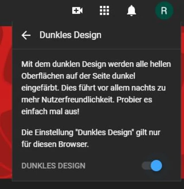 3. Wählen Sie den Punkt Dunkles Design