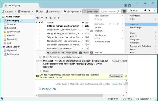 Hinzufügen einer Erweiterung in Mozilla Thunderbird