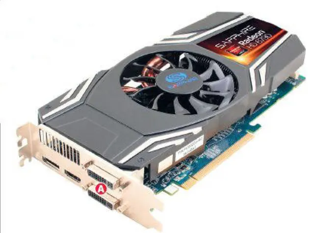 Bild 1: An zwei digitale DVI- Anschlüsse (A) lassen sich problemlos zwei aktuelle Monitore anschliessen