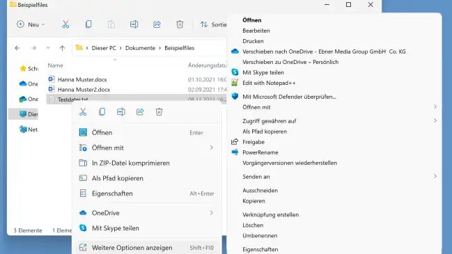 Windows 11 hat das Kontextmenü von Dateien und Ordnern abgespeckt, sodass die komplette Befehlsliste nur noch über einen Zusatzklick erreichbar ist. Das lässt sich aber ändern.