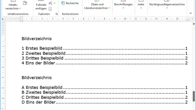 Word: Buchstaben statt Zahlen im Bildverzeichnis