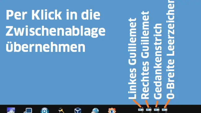 Brauchen Sie häufig das nullbreite Leerzeichen? Oder die Guillemets? Oder andere Sonderzeichen? Mit ein paar winzigen Batch-Files und einer neuen Symbolleiste stehen diese Ihnen systemweit mit einem einzigen Klick zur Verfügung.