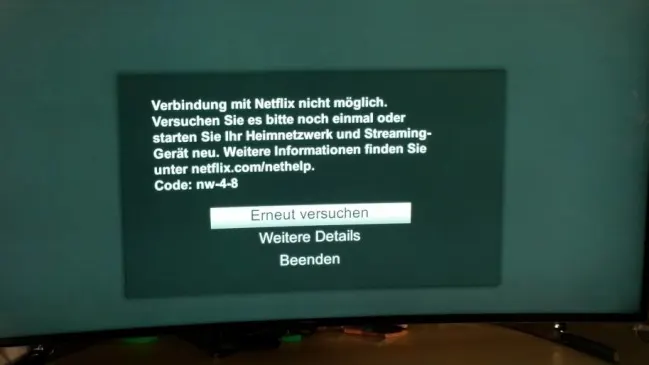 Die Netflix-App auf dem Fernseher oder Blu-ray-Player streikt: «Netflix hat einen Fehler festgestellt». Die weitere Fehlermeldung gibt den Code: nw-4-8 aus. Versuchen Sie die folgenden Tipps - einer davon hat bei einem Testgerät in der Redaktion funktioniert.