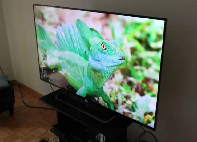 Nach ein paar Anpassungen beim Farbraum und beim automatischen Anzeigebereich in den Einstellungen überzeugt die Schärfe. Erfreulich: 4K-Inhalte von Netflix und YouTube spielt der TV ruckelfrei ab. Horizontale Schlieren bei schnellen Szenenwechseln wie zu Anfangszeiten der ersten 4K-Fernseher machen sich nicht bemerkbar. Eine Freude fürs Auge sind die natürlichen und ausgewogenen Farben und vor allem die Blickwinkelstabilität. Besonders die Kontraste und das Schwarz beeindrucken auf sehr hohem Niveau. Wir können hier fast keine Negativpunkte ausmachen. Einzig die Homogenität bei der Ausleuchtung an den Rändern dürfte noch einen Tick präziser sein.