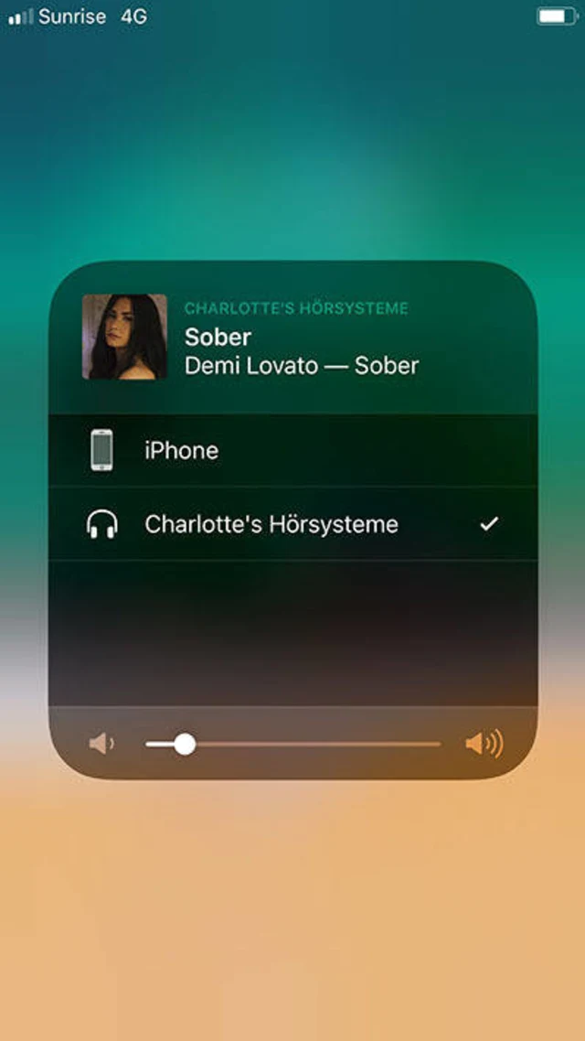 Falls der Wechsel zwischen Streaming und Telefonie nicht automatisch funktionieren sollte, können Sie manuell via Kontrollzentrum ins Streaming-Menü wechseln. Wenn Sie oben rechts aufs Streaming-Symbol tippen, sehen Sie als Optionen Ihr iPhone und darunter die Hörgeräte. Wählen Sie Ihr iPhone.