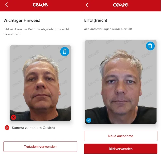 Um was es geht: Der Fotobuchprimus Cewe bietet mit der neuen Passfoto-App die Möglichkeit, am eigenen Smartphone biometrische Passbilder zu schiessen. Und es geht noch mehr – deutlich mehr: Die Fotos können für die Identitätskarte, den Schweizer Pass, für das Visum, Aufenthaltstitel sowie den Führerausweis verwendet werden.