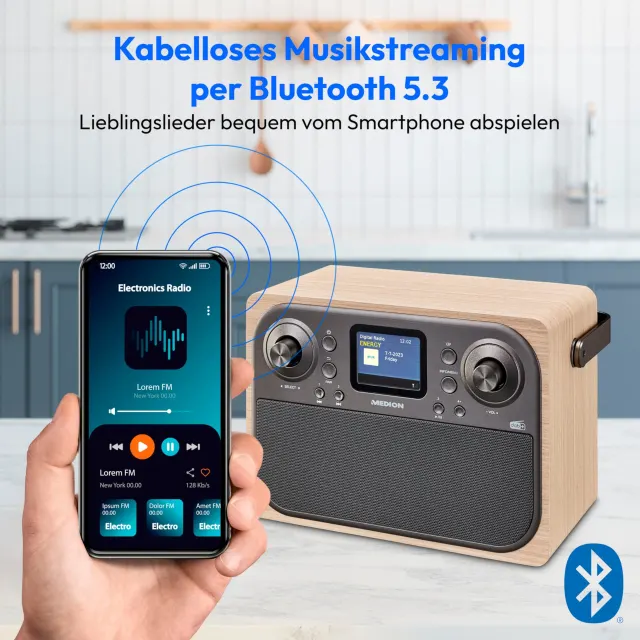 Quelle: MedionBluetooth und AUX-in inklusive: Dann ist der Wunschsender bereits auf der entsprechenden Shortcut-Taste hinterlegt. Genauso einfach ist die Bluetooth-Funktion umgesetzt. Dazu wird schlicht der Pairing-Knopf am Radio gedrückt, danach gleich das Radio auf dem Handy via Bluetooth gekoppelt. Auch das ging innert Sekunden problemlos vonstatten. Die Qualität vom Sound geht in Ordnung. Zwar dürften sich audiophile Klangnasen an den etwas dünnen Höhen anstossen. Dafür sind die Mittellagen und Bass umso mehr hörenswert. Und gemessen am Strassenpreis von lediglich Fr. 55.- dürfte das Gesamtpaket dem einen oder anderen Nutzer seine Mundwinkel durchaus nach oben schnellen lassen.