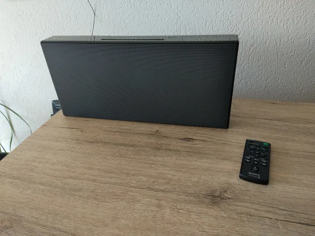 Das Personal-Audio-System CMT-X5CDB von Sony kommt in Schwarz und misst 38,5 × 17,8 × 8,1 Zentimeter, das Gewicht beträgt 2,7 Kilogramm. Optisch macht es sich gut auf meiner Kommode. Zwei Breitband-Lautsprecher (40W) und die dualen Passivradiatoren liefern im Wohnzimmer ausgewogenen Sound.