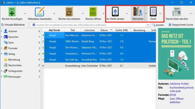 Um das Problem zu beheben, können Sie eine E-Book-Software verwenden, beispielsweise Calibre. Calibre ist ein kostenloser, einfach zu bedienender E-Book-Manager. Grundsätzlich fügen Sie eine EPUB-Datei zur Software hinzu, senden sie an den Kobo und Calibre kümmert sich dann automatisch um das Format und eine allfällige Konvertierung. Der genaue Ablauf ist in diesem Tipp erklärt.